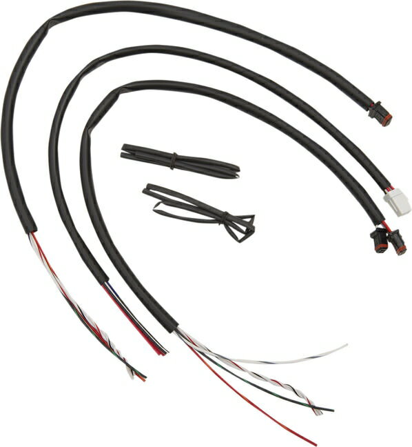 製品番号: LA-8990-00Saves time by streamlining handlebar wiring jobsKits include all the materials necessary to extend the wires for hand controls (do not include extensions for Throttle By Wire controls if applicable)Terminals crimped on one endCut-to-length design will accommodate up to 20" Ape Hanger handlebarsIncludes OEM color matching wires and heat shrinkMade in the U.S.A.Brand : LA CHOPPERSVendor part number : LA-8990-00Color/Finish : BlackFeatures : Heat Shrink Includes Terminal EndsProduct Name : Wiring HarnessType : Handlebar SwitchUnits : KitWire/Cable Length : 61 cm (24")