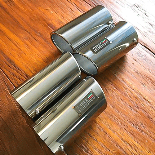 説明「ただのマフラーカッターではない」平板からレーザーで切り出されたステンレス材を丸め、テール部分のラウンドは型で一つ一つ手で押しています。そこから研磨を行いピカピカになったステンレステールはまさに芸術品です。ノーマルマフラーのテールエンド、少々引っ込み気味です。THREEHUNDREDのマフラーテールエンドフィニッシャーを装着すると約30mm後方にテールエンドを延長出来ます。そこから更に30mm後方にアジャストできるように調整しろを残していますので、後々カーボンディフューザーを装着した際にも見た目を整える事が可能です。取り付けも一工夫していまして、テールフィニッシャーをマフラーに差し込んで、付属のイモネジとナットで締め込むと、内側で2重構造になっているプレートがマフラーテールを押し、面とイモネジで取り付け出来るような設計になっています。簡単に作れそうな商品だからこそいろいろ拘りを盛り込んだTHREEHUNDREDのマフラーテールフィニッシャー。THREEHUNDREDのステンレスプレートをおつけして、超がつくハンドメイド商品にニヤリとして頂けたらと思います。※レコードモンツァとノーマルマフラーに装着可能です。※販売価格はテールフィニッシャー4個(1台分)の価格になります。対応車種ABARTH 124 Spiderサイズ-カラー-素材ステンレス備考-