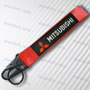 三菱レッドレーシングキーホルダーメタルキーリングフックストラップストラップナイロンユニバーサル MITSUBISHI RED Racing Keychain Metal key Ring Hook Strap Lanyard Nylon Universal