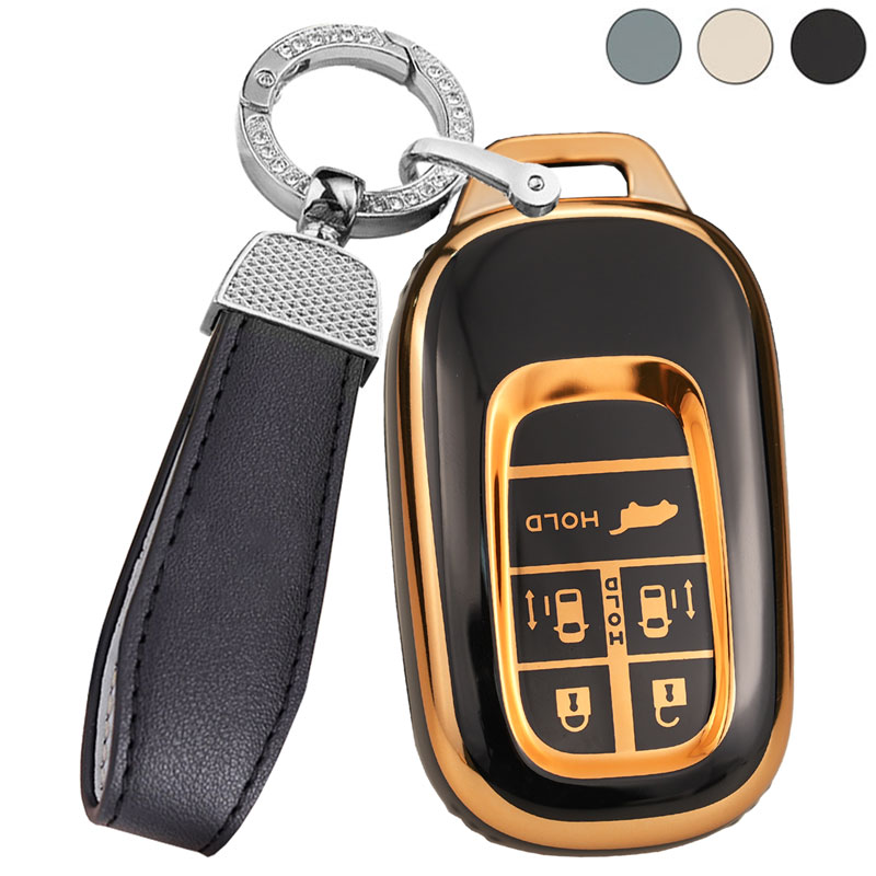 送料無料 ONTTO ホンダ向けの スマートキーケース 5ボタン 両側スライドドア 電気メッキ キーカバー 革製バックル Honda用 新型ステップワゴン RP6 RP7 RP8 オデッセイ 2021年 エリシオン2022年 本田 男女兼用 弾力性 耐久性 傷防止 防水 高品質TPU 誕生日 記念日 贈り物