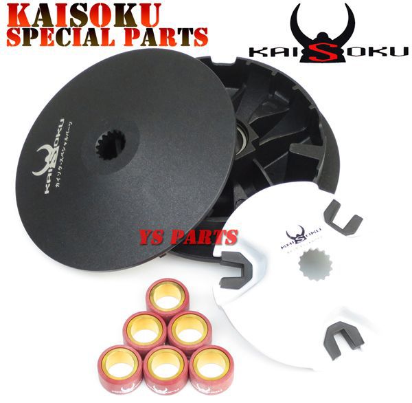 ■商品概要【サイズ】・ドライブフェイス外径115mm・ドライブフェイス内径15mm・ドライブフェイススプライン19山・プーリー外径115mm・プーリー内径24mm・ランププレート内径15mm【仕様】・純正と同じ18mm×14mmローラー採用・初期10gが付属■詳細説明【商品説明】■KAISOKU ハイスピードプーリーとなります。■プーリー、ドライブフェイスにテフロンコーティングを採用。■ローラーサイズは18×14と純正サイズになります。■駆動系をバランスよくセットアップしてくれるオススメのキットです。■注意点※適合車種以外への流用データはございません。※上記車両に関しましては年式等で装着ができない車両が一部発生しております。寸法を記載しておりますのでご確認の上ご購入ください。※メーカー都合により商品の仕様変更がある場合がございます。ご了承ください。■適合車種AGILITY 125 AGILITY 125SUPER8 125 SUPER8 125Vリンク125 LTD Vリンク125 LTDVリンク125 SR Vリンク125 SRVリング125 Vリング125G-MAX150 G-MAX150IBUBU125 IBUBU125MYBUBU125 MYBUBU125T-REX125 T-REX125X-HOT125 X-HOT125アッローロ125 アッローロ125アッローロ150 アッローロ150 備考: GY6系エンジン