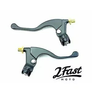 2FastMoto ホダカ GP スタイル レバー セット パーチ付き ブラック 合金 7/8" 01-30210 2FastMoto Hodaka GP Style Lever Set with Perch Black Alloy 7/8" 01-30210
