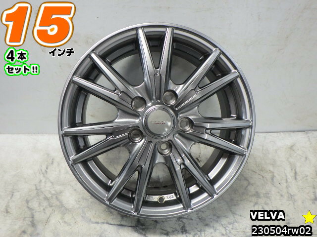 【中古】中古ホイール 15インチ 4本セットウェッズ VELVA(ヴェルヴァ)KEVIN(ケヴィン)15x6J+53/114.3/5Hガンメタ/スポーク