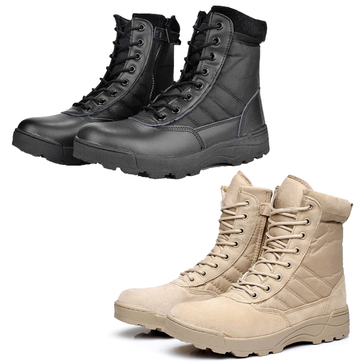 全4色! [Men's Desert Military Tactical Boots] メンズ デザートミリタリー タクティカルブーツ! 靴 シューズ スニーカー マウンテンブーツ アーミー コンバット ミドルブーツ レースアップ ジッパー開閉 牛革スエード アウトドア バイクに!*