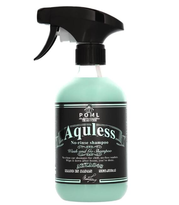 POML Aquless ぬぬふぁくとりー 中性 原液も希釈もスプレーしてサッとひと吹き 広範囲も短時間でキレイ 安全性 こだわりのリンスレス マンション洗車 忙しい日常でも 内外装全てに使用可 ウォータレス いつでもどこでも ポムル NUNU FACTORY アキュレス 500ml
