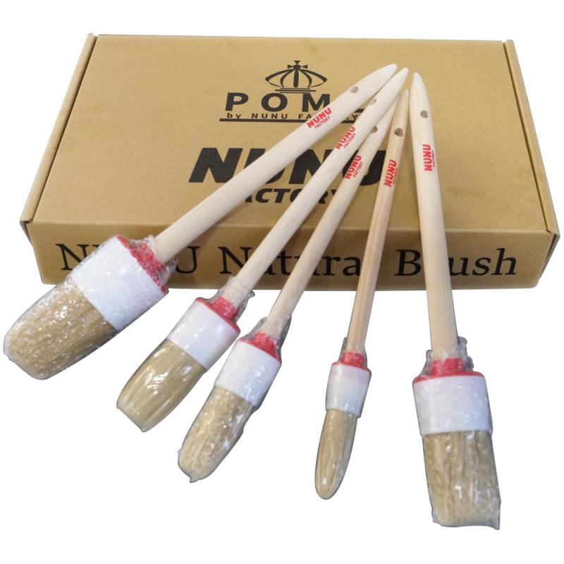POML ぬぬふぁくとりー NUNU Natural Brush 使い分け可能なサイズ別5本セット 天然素材ディテールブラシ ウッドスティック 豚毛ブラシ 洗車 洗車用品 カー用品 ポムル ぬぬナチュラルブラシ