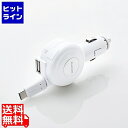 【スーパーSALE】12/11 AM1:59まで エレコム シガーチャージャー/Type-C/リールタイプ/USBポート付/おまかせ充電/60cm/3A/ホワイト MPA-CCC04WH