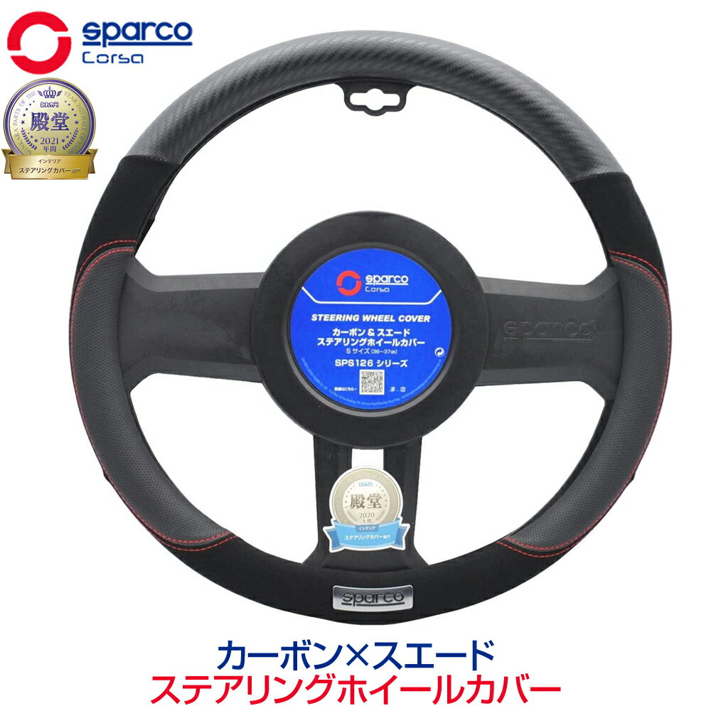 ハンドルカバー 軽自動車 Sサイズ おしゃれ 普通車 スパルコ コルサ ステアリングカバー カーボン柄 SparcoCORSA ステアリングカバー カーボン&スエード ブラック Sサイズ SPS126J_S 送料無料