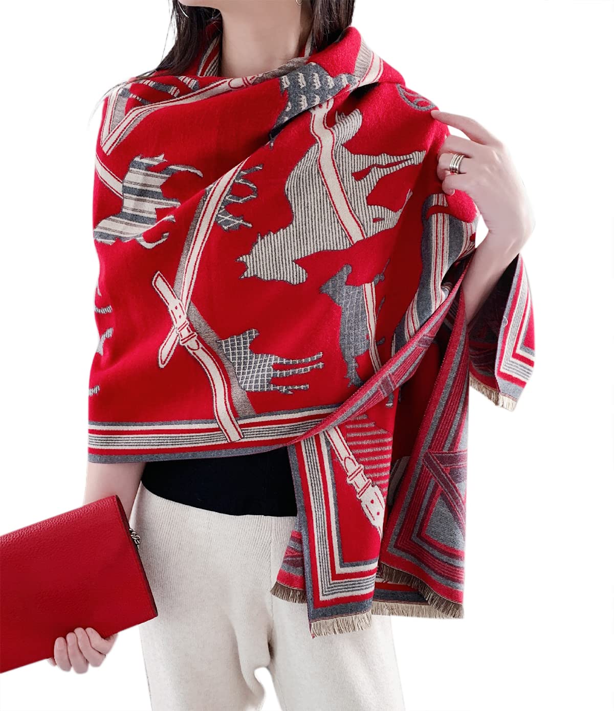 【送料無料】[Euyqs] レディース ビンテージ ストール 大判 厚手 マフラー スカーフ ショール (09 レッド)
