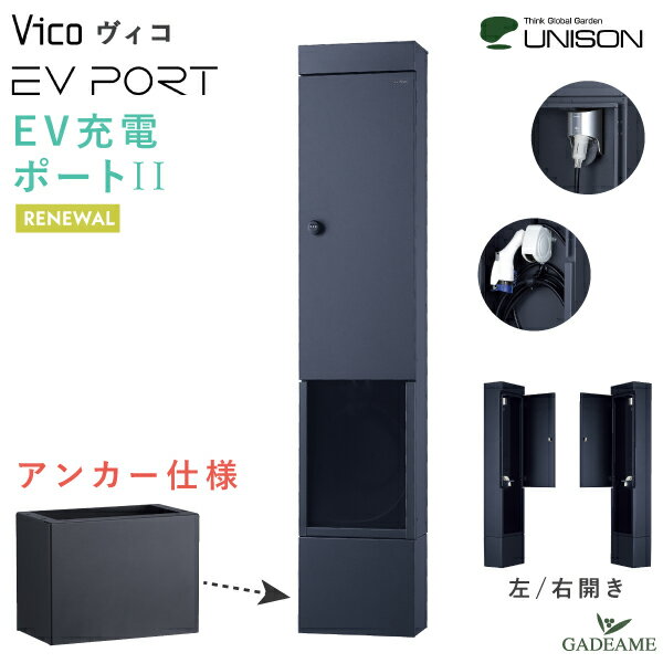 【個人宅様配送 不可】電気自動車用 充電スタンド ヴィコ EVポート2 アンカー仕様 充電ポート 左/右開き 200V コンセント付 ダイヤル錠 施錠 ロック可能 ケーブルリール 自動巻き取り フック 自宅用 EV車/BEV車/PHEV車/PHV車 戸建 機能門柱 【ユニソン正規代理店】