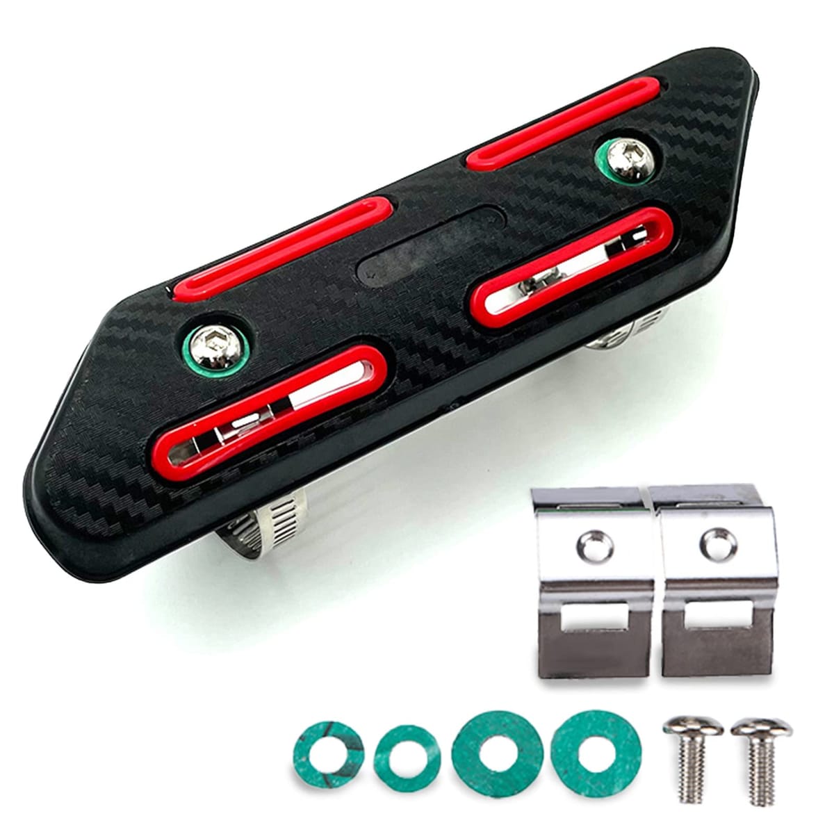 汎用タイプでバイク、オートバイ用のエキゾーストプロテクターになります。 エキゾーストパイプに装着することにより、服や身体が直接当たらないように火傷防止として保護します。エキパイガード、エンジンガード、マフラーガード、ヒートシールドカバーとも呼ばれていますが、共通して断熱(遮熱)が期待できるアイテムとなります。カーボン調でカラーバリエーションも豊富なので、カスタムやカスタマイズ、ドレスアップ用のパーツとしてもオススメです。 さらに、ABS樹脂なので質感も良く耐衝撃性にも優れているので大切な愛車のオートバイがキズ付かないように保護します。【サイズ】190mm×160mm×55mm(バンドは27mm~51mm) 【カラー】レッド、ブラック、ブルー、グリーンお手持ちのパソコン・スマートフォン・携帯の画像により商品のお色に若干の差がある場合がございます。 汎用タイプでバイク、オートバイ用のエキゾーストプロテクターになります。 エキゾーストパイプに装着することにより、服や身体が直接当たらないように火傷防止として保護します。 エキパイガード、エンジンガード、マフラーガード、ヒートシールドカバーとも呼ばれていますが、共通して断熱(遮熱)が期待できるアイテムとなります。 カーボン調でカラーバリエーションも豊富なので、カスタムやカスタマイズ、ドレスアップ用のパーツとしてもオススメです。 さらに、ABS樹脂なので質感も良く耐衝撃性にも優れているので大切な愛車のオートバイがキズ付かないように保護します。 【サイズ】190mm×160mm×55mm(バンドは27mm~51mm) 【カラー】レッド、ブラック、ブルー、グリーン