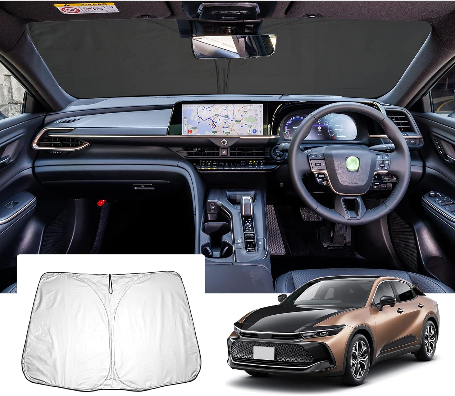 【GAFAT】TOYOTA クラウンクロスオーバー トヨタ TZSH35/AZSH35型 16代目 2022年〜現行 CROWN CROSSOVER 新型 専用 車用サンシェード フロントガラス用 UVカット 折り畳み 遮光 断熱 紫外線カット 日よけ 収納袋付 車中泊 軽量 取付簡単 インテリア 防犯対策