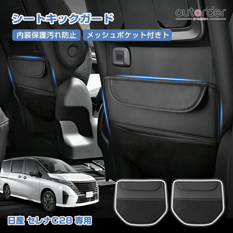 \ブラックフライデー限定!10%OFF&P5倍UP/autorder 日産 セレナ C28 シート キックガード シートバック 2WAY 車用 収納ポケット 小物収納 メッシュポケット 座席用 車用収納バッグ キズ 汚れ防止 防水仕様 簡単取付 車用品 アクセサリー カスタム 内装 パーツ