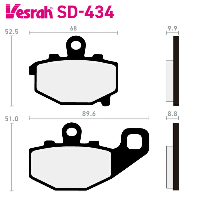 ベスラ SD-434 レジンブレーキパッド バイク カワサキ ZR400 ER400 EX400 ZX-6R ZX600 EX650 ER650 KLE650 ZR750 ZR750L ZX1000 ZR1000 ZX1002