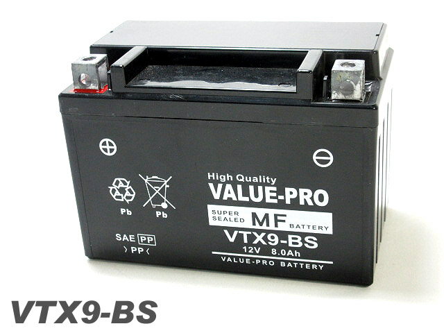 VALUE PRO バリュープロ 充電済 タイプ バッテリー 互換バッテリー YTX9-BS GTX9-BS FTX9-BS DTX9-BS 他 ■商品概要 状態 新品バッテリー 付属品 本体・ビス・保証書 保証 30日保証 ※詳しくは下記参照 ◆バッテリー要項表(サイズ・重量は目安となります) 形式 容量 長さ 幅 高さ VTX9-BS 液入 8.0Ah 151mm 88mm 106mm ◆出荷時に電圧チェック、補充電後発送しております タイトルのに記載の車両でも年式により異なるバッテリーが搭載されている場合もございます。 バッテリーの選定時は車両搭載バッテリーの型番・各寸法をご参考にお願いいたします。 また、輸入商品のため使用に支障のない傷、汚れ、ビスの不具合がある場合がございます。予めご了承お願 い致します ■新品バッテリー交換について ※ショートさせると大変危険です。十分なご注意の上交換作業をして下さい。 ・取り外し順:マイナス端子→プラス端子 ・取り付け順:プラス端子→マイナス端子 ※コネクタータイプのバッテリーはそのまま交換して下さい ◆廃バッテリーは処分無料です。エコ活動にご協力ください! お客様送料ご負担にてご不要の廃バッテリーを弊社まで送ってください。 弊社にて回収業者経由→リサイクル工場にて新品として生まれ変わります。ぜひご協力ください。 ◆WAVEパーツ館の安心保証 ■保証内容 商品到着後、30日以内にバッテリー本体に原因がある故障の場合、1度限りにて交換対応致します。 ※保証を受ける際、付属の保証書の添付が必須となります。大切に保管お願い致します。 ■保証時の送料とご連絡方法 初期不良:到着より7日以内は弊社にて送料負担致します。 通常不良:到着より8日以降はお客様送料ご負担にてお願い致します。 ※通常不良期間の交換バッテリーの先送りは行っておりません。予めご了承お願いいたします。 ■保証できない事例 ※バッテリー詳細についてのQ&Aはこちらでご確認下さい。 故障の原因が車両側によるもの(オルタネータ、レギュレター不良) 故障の原因が天災及び事故によるもの 取扱方法の間違えによる本体の破損によるもの 脱着にかかる工賃・車両の修理代等 充電の後、正常に動作するものはご対応出来ません。[お願い] お客様が安心してお買い物をして頂くために商品説明を十分ご理解の上ご購入お願い致します スマートフォン、モバイルユーザーの方は表示されない部分が有るためフルブラウザ(PCサイト)にて内容確認お願い致します。 ■バッテリーの適合は現車にてご確認下さい。※サイトでの適合確認は GSユアサさまホームページでご確認頂けます。 ※車両の「年式・仕様」で搭載バッテリーが異なる場合がございます。