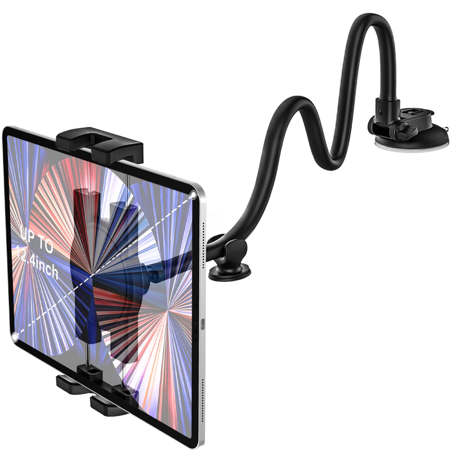 EXSHOW タブレットホルダー ipad車載ホルダー 33cm長いアーム 超強力吸盤 車載用タブレットスタンド フロントガラス タブレットアーム 柔軟に曲げ 360度回転 片手脱着 取り付け簡単 タブレットとスマートフォン4.7〜13インチ全機種対応 iPad Pro 9.7 11 12.9 インチ/iPad Air