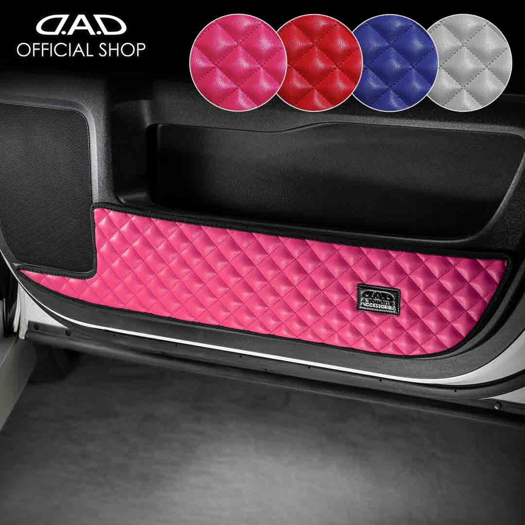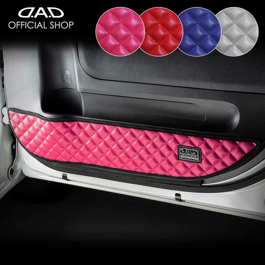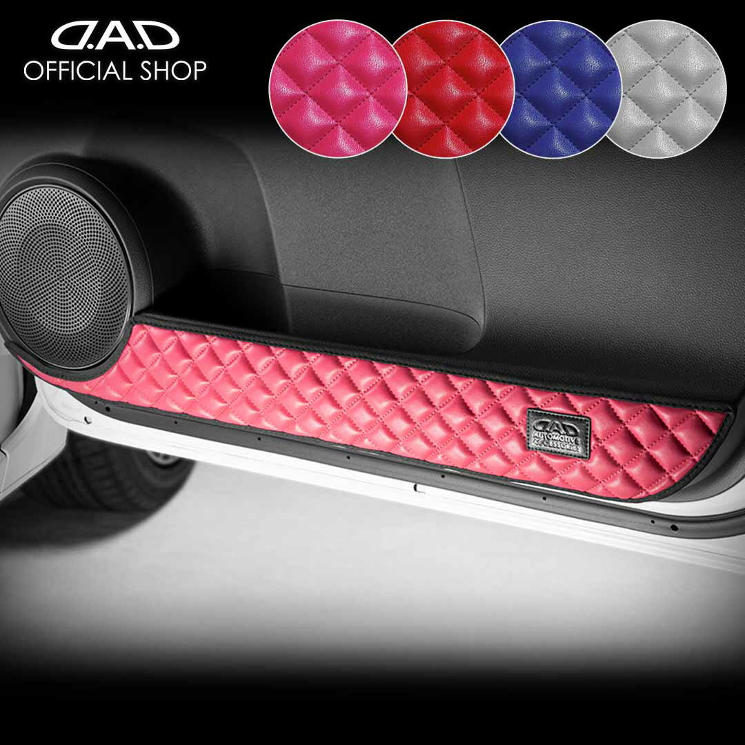 D.A.D DOOR KICK GUARD D.A.Dドアキックガード【KG】 ※装着画像はイメージです。デザイン/カラーをラインナップからお選びいただきご注文ください。 ● PROFILE ふとした瞬間に足が当たってしまいドアの内張りに入ってしまう キズを防止する「ドアキックガード」 キルティングレザーと商品本体に施されたD.A.D 型押しレザーバッジによりキズ防止だけでなく、車内のインテリアドレスアップとしても最適! ● CONTENTS デザインタイプ … キルティング ● FUNCTION 【 車種専用設計 】 1台1台 型取りし設計されているので、車両にジャストフィット! 【 簡単取付(※両面テープ付属) 】 ドアの内張に両面テープで固定するだけの簡単装着! 【 4種類のカラー設定 】 カラーラインナップには、「ピンク」「レッド」「ブルー」「ホワイト」の4色からお好みのカラーをお選びいただくことができます。