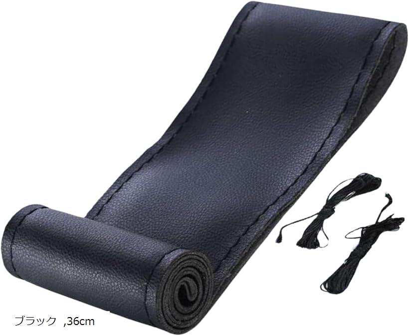 ハンドル カバー ステアリング 車 滑り止め グリップ 革 スポーツ シート プロテクター 軽トラ 編み込み 36cm ブラック (ブラック, 36cm)