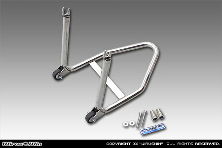 シグナスX【 2型 】用 フロントスタンドです。 ※台湾仕様:SE36・SE37・SE461〜SE464/国内仕様:SE44J(28S)に適合します。 ※画像は旧モデルです。 レースシーンからのフィードバック商品で、頻繁にタイヤ交換をしたりタイヤウォーマーを掛けるレース車両には必須アイテムです。レース活動ではすでに大活躍の商品で、大変助けられています。 スタンドを楽に掛けることができ、安定しているので整備作業も安心して行うことが出来ます。 耐久性、耐腐食性の高いステンレスを採用し、鏡面仕上げを施しています。WirusWinステッカーもお付けします。