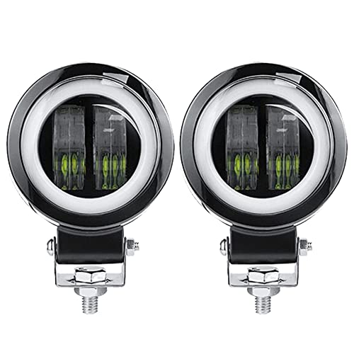 X-STYLE 20W バイク フォグランプ カットライン ホワイト イカリング LEDワークライト 作業灯 12V 24V DC 高輝度・防水・長寿命・耐衝撃 丸型 汎用 スイッチ付き 2個セット(白)