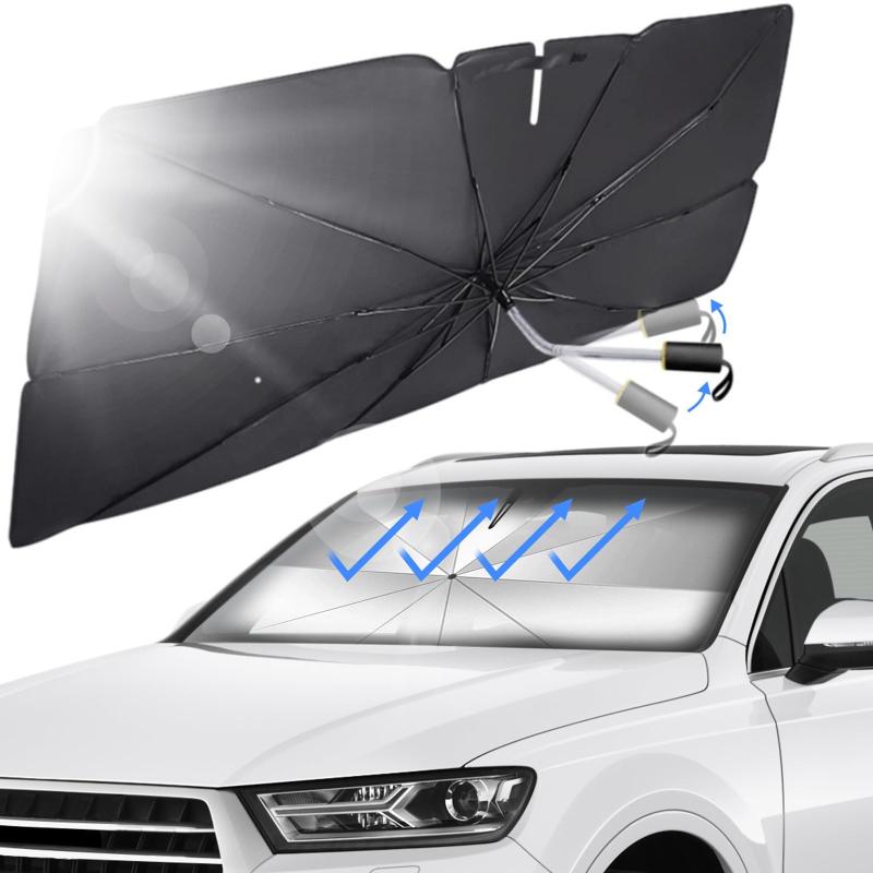 DEWEL サンシェード 車 フロント 傘型【360°中棒回転・強化10本骨】車サンシェード UVカット 遮光遮熱 軽自動車/普通車対応 折りたたみ式 収納ポーチ付き 車用サンシェード フロントガラス用