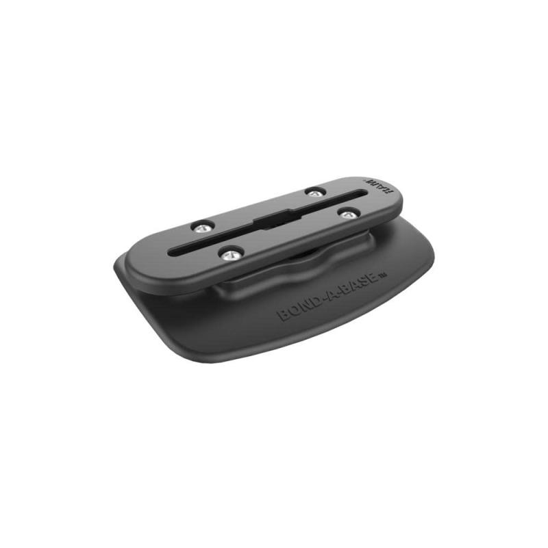ラムマウント(RAM MOTS) ボンドAベース レールローディング付 5.25inch R-398-BLK-TRACK-AU ブラックカラー:ブラック材質:高強度プラスチック/アルミニウム7.25インチのタフトラックレールを粘着パッドで取付可能。別売タフトラックボールをレールに装着可。脱脂アルコールパット付属。