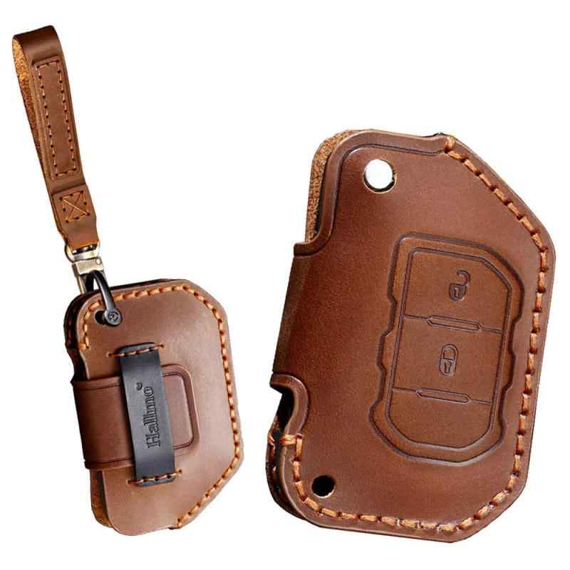 [KUNIO] ジープ専用 キーケース キーカバー 高級 本革 キーホルダー Jeepと互換性のある ラングラー JL ラングラー グラディエーター サハラ JT 2018 2019 2020 2021等に適用 手縫い レザー キーリング