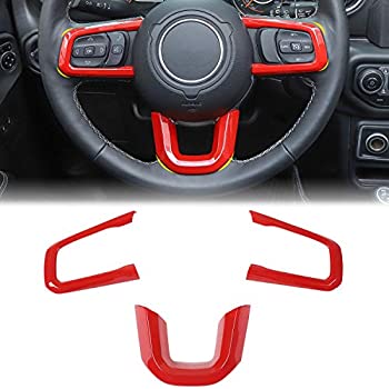 【中古】【輸入品・未使用】CheroCar JL JT ハンドルカバー レッドパネル装飾 インテリアアクセサリー 2018-2020 Jeep Wrangler JL 2020 Jeep Gladiator JT用 3パック