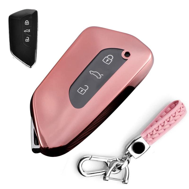 キーケース フォルクスワーゲン用 スマートキーケース キーカバー 柔らかい TPU 3ボタンGOLF8 フォルクスワーゲン専用設計 VW ゴルフ Mk8 2020 Skoda SEAT LEON2020 等に適用 キーホルダー
