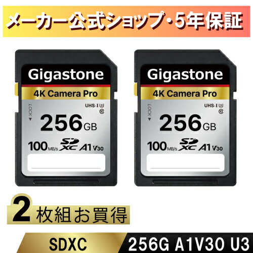 【5年データ復旧・無償交換保証】GIGASTONE SDカード 256GB 2個セット 4K Camera Pro SDXC UHS-I A1 V30 U3 C10 100MB/s 高速 4K UHD & Full HD ビデオ Canon Nikon Sony Pentax Kodak Olympus Panasonicなど デジタルカメラ 一眼レフ対応 ミニケース2個付き 送料無料