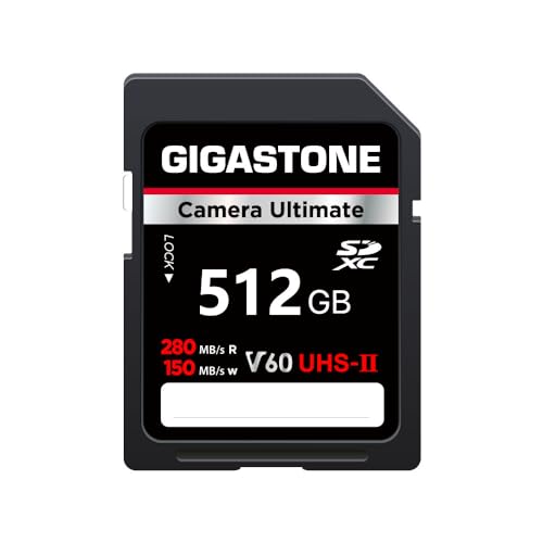 Gigastone SDカード 512GB UHS-II V60 U3 SDXC 超高速 メモリーカード, 最大280MB/s, 4K UHD ビデオ Canon Nikon Sony Pentax Kodak Olympus Panasonicなど