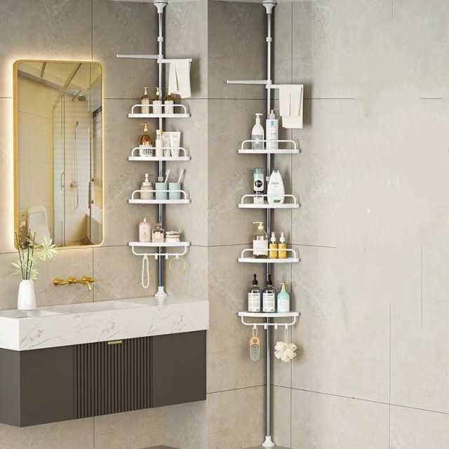 【全品2点で5%OFF】シャンプーラック ステンレス 錆びない 4段 おしゃれ お風呂 収納 バスラック 石鹸置き 突っ張り棚 浴室 ラック バスルーム 風呂 浴室収納 コーナーラック つっぱり キッチン トイレ 洗面所 高さ調節 伸縮 コーナーシェルフ