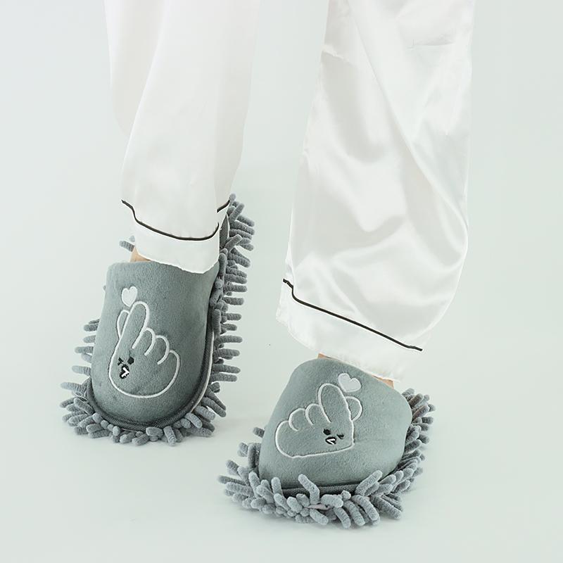 スリッパ モップ ルームシューズ 冬 お掃除グッズ スボラ 履くだけ 家庭用 フローリング シェニール 取り外し 面ファスナー 洗える 刺繍 ラブサイン グレー アイボリー
