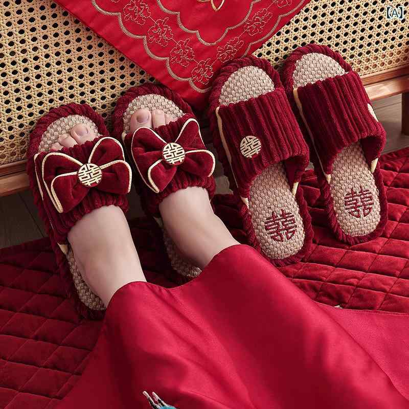 スリッパ ウェディング ペア 2025 結婚式 カップルお祝いの ワイン レッド 花嫁 持参 金 軽い 豪華 リネン.カラフルカラーオシャレ