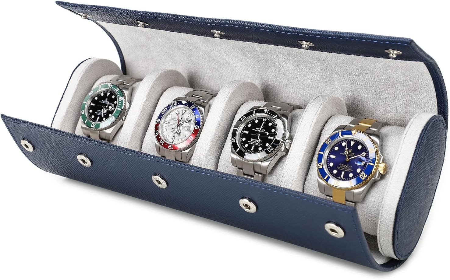腕時計 ケース 時計ケース 4本 腕時計 収納ケース 腕時計トラベルケース ウオッチケース 収納ボックス 時計 旅行(Blue)