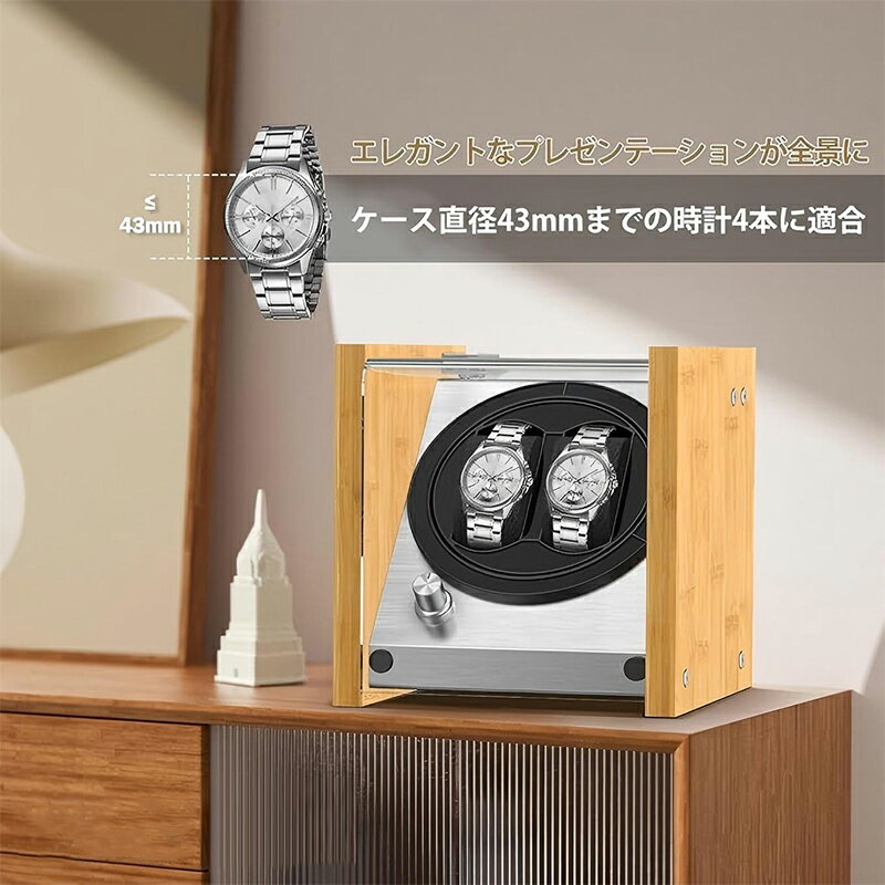【SS限定50%OFF】ウォッチワインダー カップルサイズのダブルウォッチに対応 100%ハンドメイドの竹製特許取得ケース ACまたはバッテリー駆動の日本製モーター ウォッチワインダー