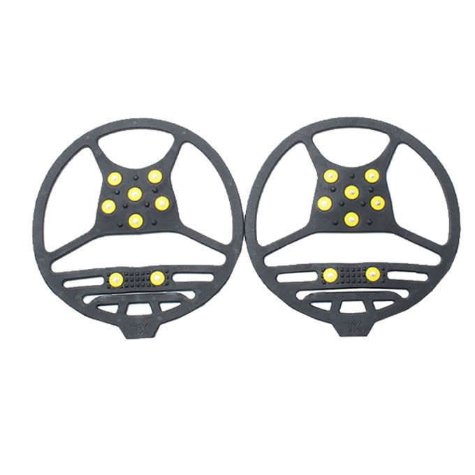 装着簡単、3ステップで靴に簡単に装着できるアイススパイクです。つま先とかかと部分にスパイクが付いた防滑効果抜群のスベリ止めです。-40℃の寒さに耐える合成ゴムを使用しております。サーモプラスチックエラストマーを使用しているので、寒冷地でも柔軟性を失わず、しっかりと靴をホールドします! ■サイズ:XL ( 28cm~31cm ) ■素材: 本体/TPR合成ゴム スパイク/鉄 黄色台座/ポリプロピレン ■原産国:台湾 検索ワード:スノースパイク スノーシューズ かんじき 滑り止め すべり止め 雪道用 雪対策 革靴用 滑らない 靴底取り付け型