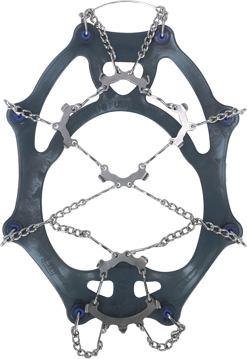 素材:ステンレススチール、シンセティックラバー サイズ:M(シューズ22.5~25.0cm)、L(シューズ25.0~28.5cm)、XL(28.5~31.5cm) 重量:M/180g、L/200g、XL/205g(各ペアー1組)軽量コンパクト仕様のチェーンセンアイゼン。フィッティングラバーは薄くスチール爪は薄くて短い。アプローチシューズ向き。13本爪。