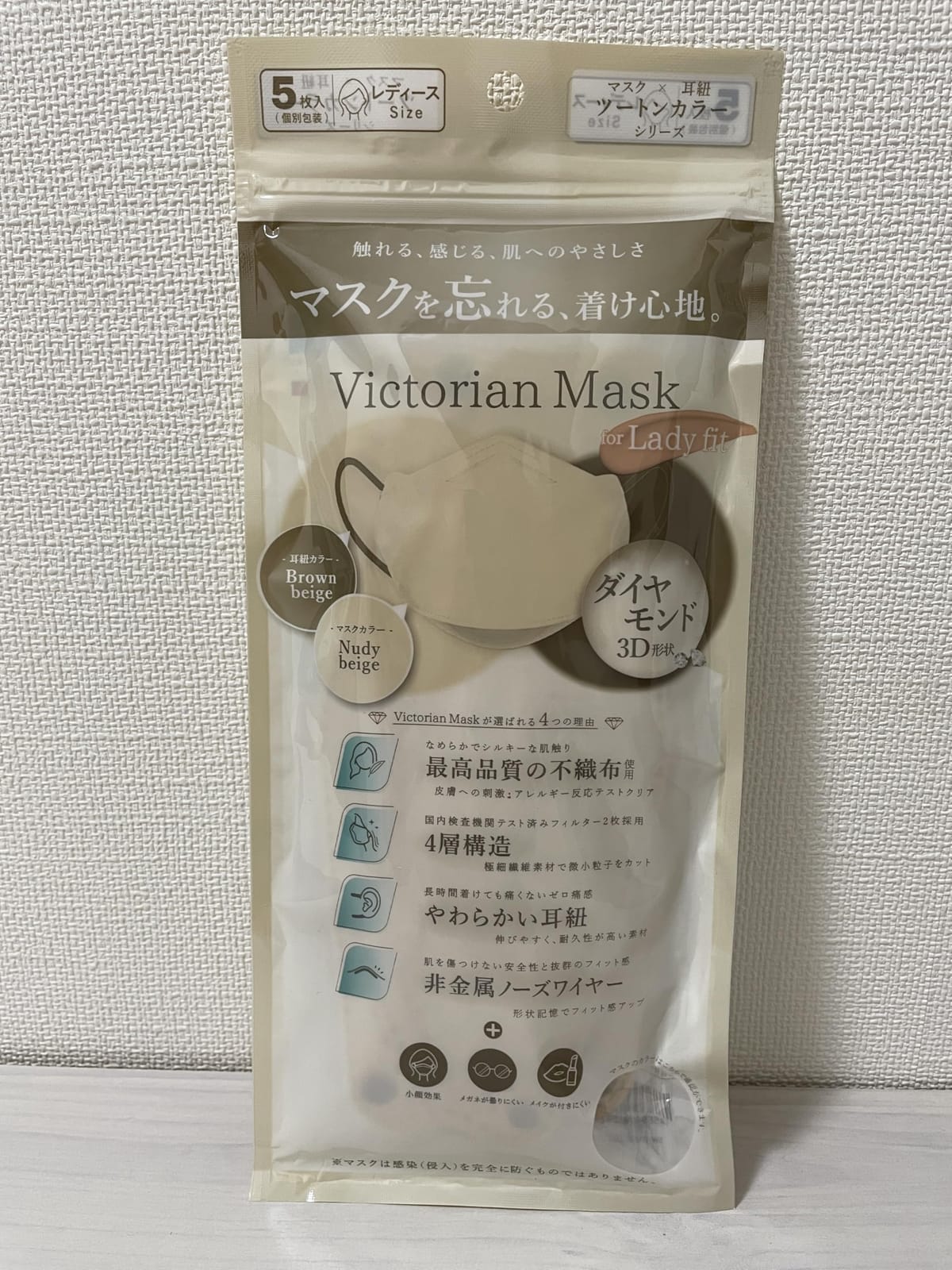 [Victorian Mask] ヴィクトリアンマスク レディフィット ヌーディーベージュ 5枚入 立体ダイヤモンド構造 息がしやすく メイクが付きにくい メガネが曇りにくい UV除菌加 国内検品