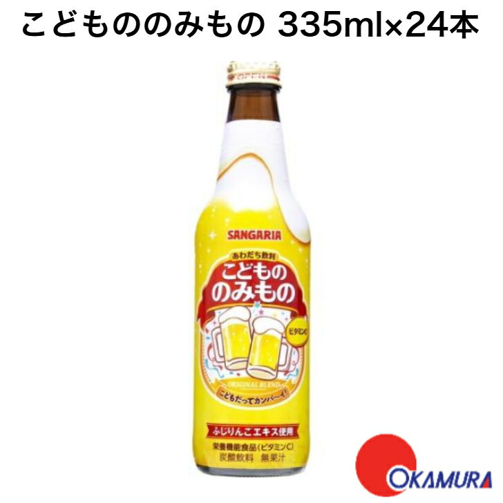 お店TOP>水・飲料>飲料・ソフトドリンク>炭酸飲料>炭酸飲料(スパークリング)>こどもののみもの (335ml×24本)商品区分:栄養機能食品(栄養成分:ビタミンC)【こどもののみものの商品詳細】●お子様にも「カンパーイ」を楽しんでいただける「あわだち飲料」です。●クリスマスなどのパーティーシーンを彩る商品としてご支持いただいております。【栄養成分(栄養機能食品)】ビタミンC【保健機能食品表示】ビタミンCは、皮膚や粘膜の健康維持を助けるとともに、抗酸化作用を持つ栄養素です。【基準値に占める割合】ビタミンC:44%【1日あたりの摂取目安量】1日あたり1本を目安にお飲みください【召し上がり方】炭酸飲料ですので瓶を振らずにお開けください。【品名・名称】炭酸飲料【こどもののみものの原材料】糖類(果糖ぶどう糖液糖(国内製造)、砂糖)、ガラナエキス、DHA含有精製魚油、りんごエキス/炭酸、香料、酸味料、乳酸Ca、ビタミンC、カラメル色素、安定剤(アルギン酸エステル)、ビタミンB2【栄養成分】1本335mlあたりエネルギー:131kcal、たんぱく質:0g、脂質:0g、炭水化物:32.8g、食塩相当量:0.017g、ビタミンC:44mg【アレルギー物質】記載なし【保存方法】直射日光や高温多湿の場所を避けて保存してください。【注意事項】・本品は、多量摂取により疾病が治癒したり、より健康が増進するものではありません。・1日の摂取目安量を守ってください。・本品は、特定保健用食品と異なり、消費者庁長官による個別審査をうけたものではありません。・食生活は、主食、主菜、副菜を基本に、食事のバランスを。【原産国】日本【発売元、製造元、輸入元又は販売元】日本サンガリアベバレッジカンパニーリニューアルに伴い、パッケージ・内容等予告なく変更する場合がございます。予めご了承ください。日本サンガリアベバレッジカンパニー546-0012 大阪市東住吉区中野4-2-1306-6702-5071広告文責:楽天グループ株式会社電話:050-5577-5043[ソフトドリンク・清涼飲料]