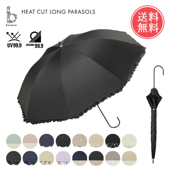 送料無料 because ビコーズ 長傘 日傘 雨傘 晴雨兼用 ヒートカット フリル バイカラー ドット スター 【 レディース ショート 親骨 50cm 小さめ 遮蔽 遮光 UVカット軽量 丈夫 雨傘 おしゃれ かわいい かさ アンブレラ UVケア UVカット】クリスマス