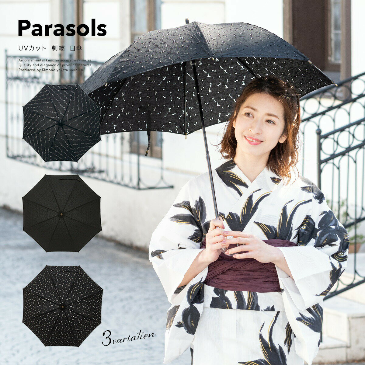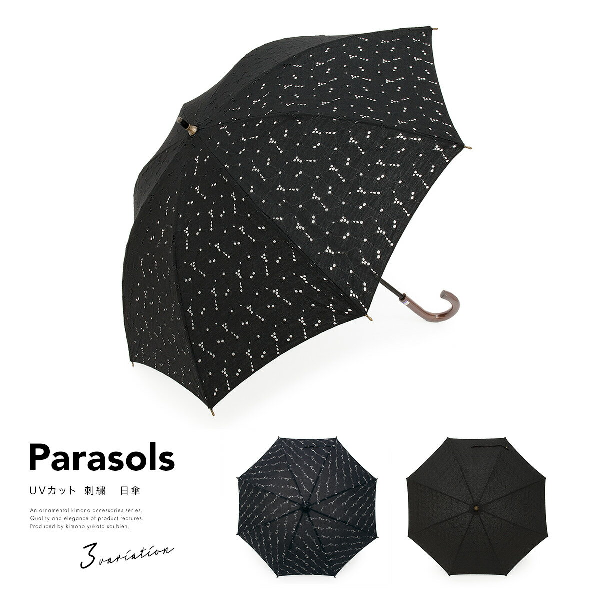 【スーパーSALE限定☆最大3000円クーポン配布中☆】日傘 和装 レディース 和洋兼用 黒 ブラック 刺繍 小花 唐草 UVケア加工 紫外線防止加工 和装小物 便利小物 母の日 【販売】