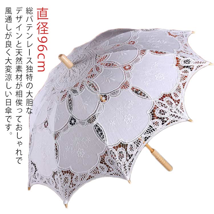 日傘 上品 長傘 総バテンレース 親骨8本 純パラソル 長傘 UVカット加工 UVケア UVカット 長傘 おしゃれ 女 エレガント 婦人 直径96c