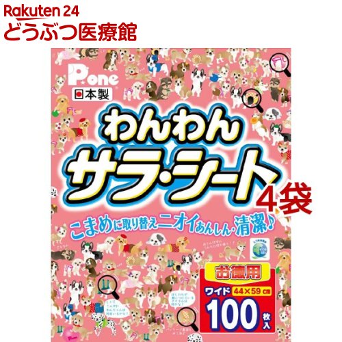 P・ワン わんわんサラ・シート ワイド(100枚入*4コセット)【dog_sheets】【P・ワン(P・one)】