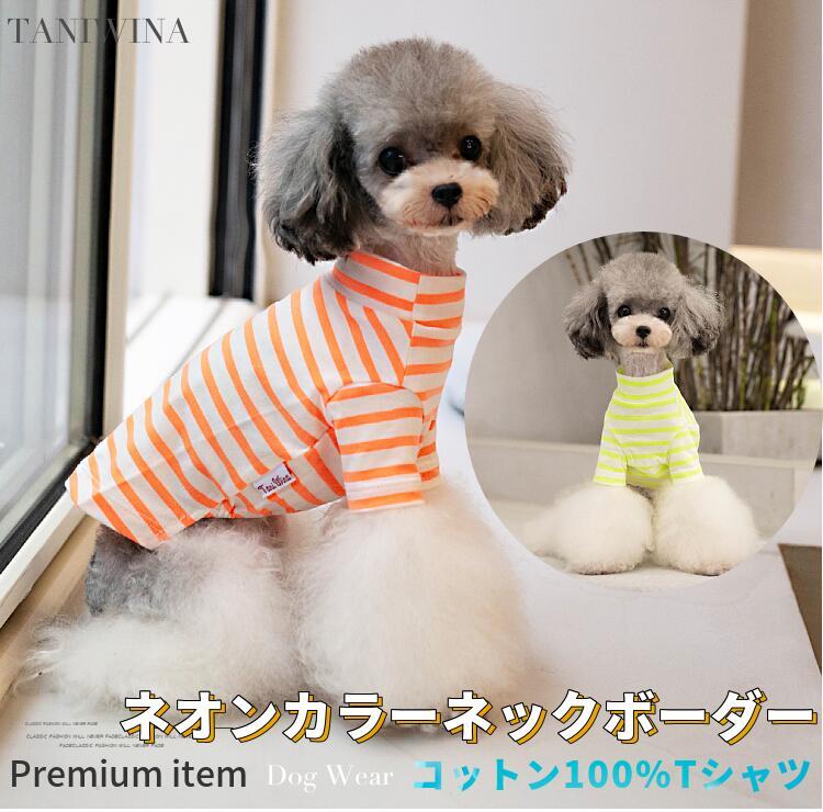【在庫一掃20%OFFクーポン】 犬服 春 春夏 犬 カットソー シャツ ネオンカラー ネック ボーダー ブランド 高級 犬 服 犬の服 ドッグウェア 猫 小型犬 中型犬 ペット用 おしゃれ 洋服 可愛い