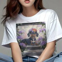 ダックスフンド Tシャツ 犬愛 ユニークデザインレディース 犬ファン 半袖 春夏 プリント 大人カジュアル かわいい 人間用 ギフト 個性的 猛暑対策 花 ダックスフンド ネックレス 花冠 紫陽花