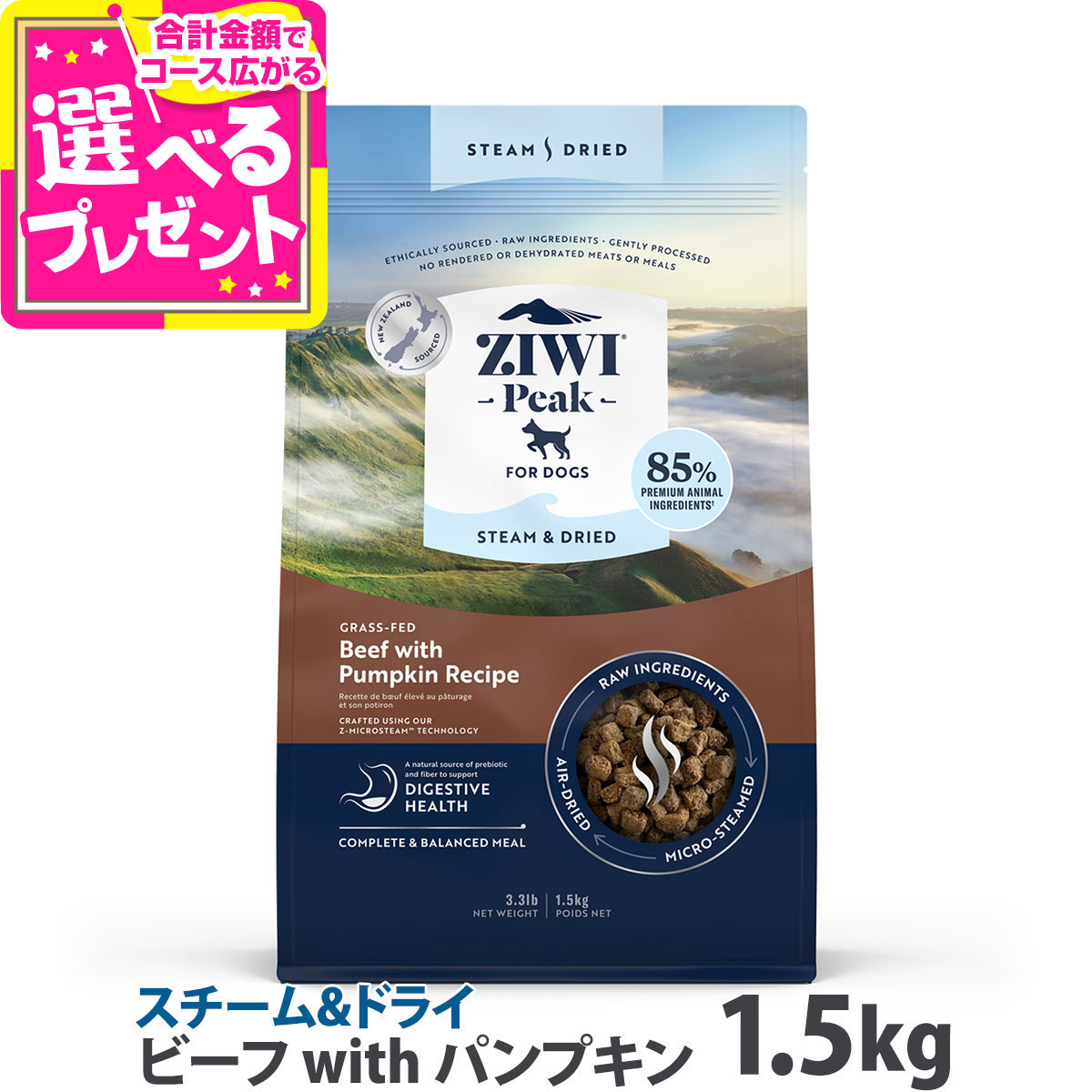 ZiwiPeak ジウィピーク スチーム&ドライ・ドッグフード グラスフェッドビーフ with パンプキンレシピ 1.5kg 犬 牛 ドックフード ドライフード 穀物不使用 グレインフリー【D】