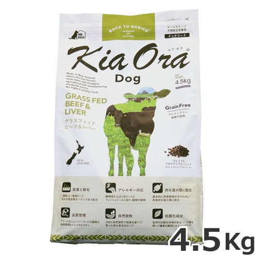 【送料無料】キアオラ ドッグフード 【グラスフェッドビーフ&レバー】4.5kg 犬用 ドライフード 無添加 総合栄養食 グレインフリー Kia Ora