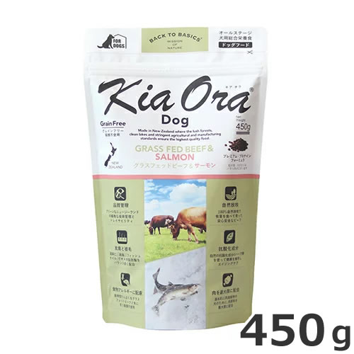 ◆ポイント10倍&クーポンあり◆ 賞味期限2026/5/21 以降 【犬用】 Kia Ora キアオラ ドッグフード グラスフェッドビーフ&サーモン 【450g】 KiaOra GRASS-FED Beef and Salmon FOR DOGS 正規品 プレミアムフード
