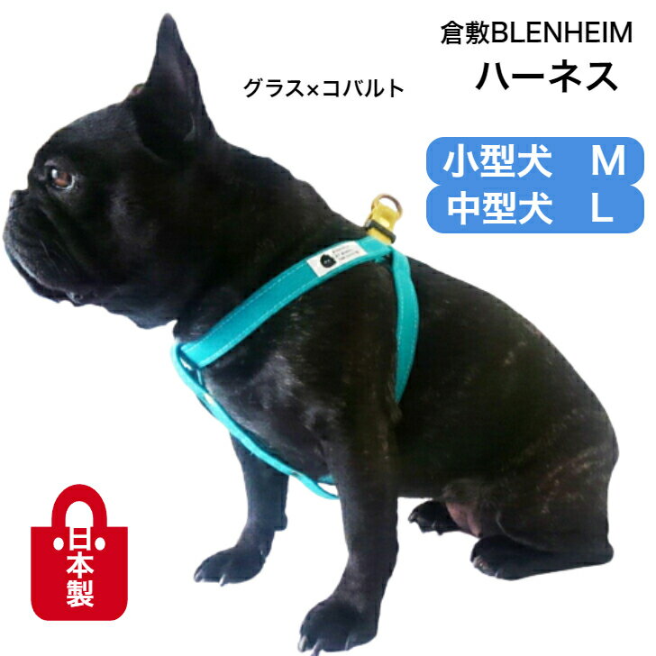 ハーネス 胴輪 小型犬 中型犬 M L グラス×コバルト コーギー ボストンテリア 柴犬 トイプードル 肌に優しい天然素材 コットン100% 倉敷製帆布 シンプル バイカラー 頭から入れない 簡単装着 おしゃれ 丈夫 首に優しい 負担が少ない 引っ張り癖 かわいい 足入れ 日本製